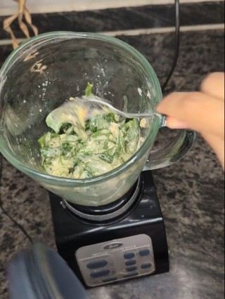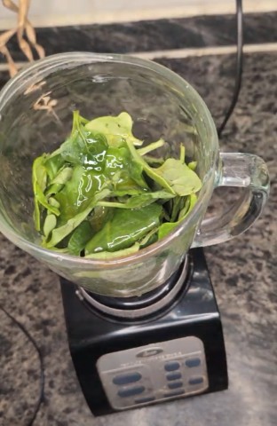 - En la licuadora coloca los garbanzos, espinaca, huevos y aceite de oliva. Licúa hasta obtener una mezcla uniforme.