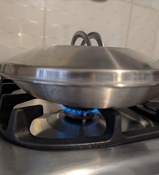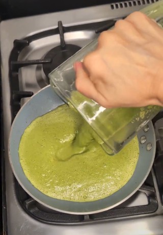 - Calienta una sartén antiadherente (puedes engrasarla apenas si lo necesitas). Vierte la mezcla, baja el fuego a mínimo y tapa.